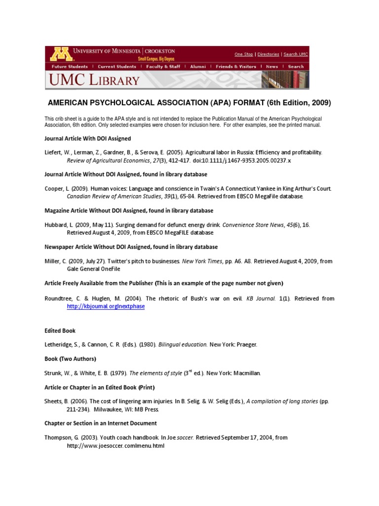 Apa 6th Edition Citation Apa Style