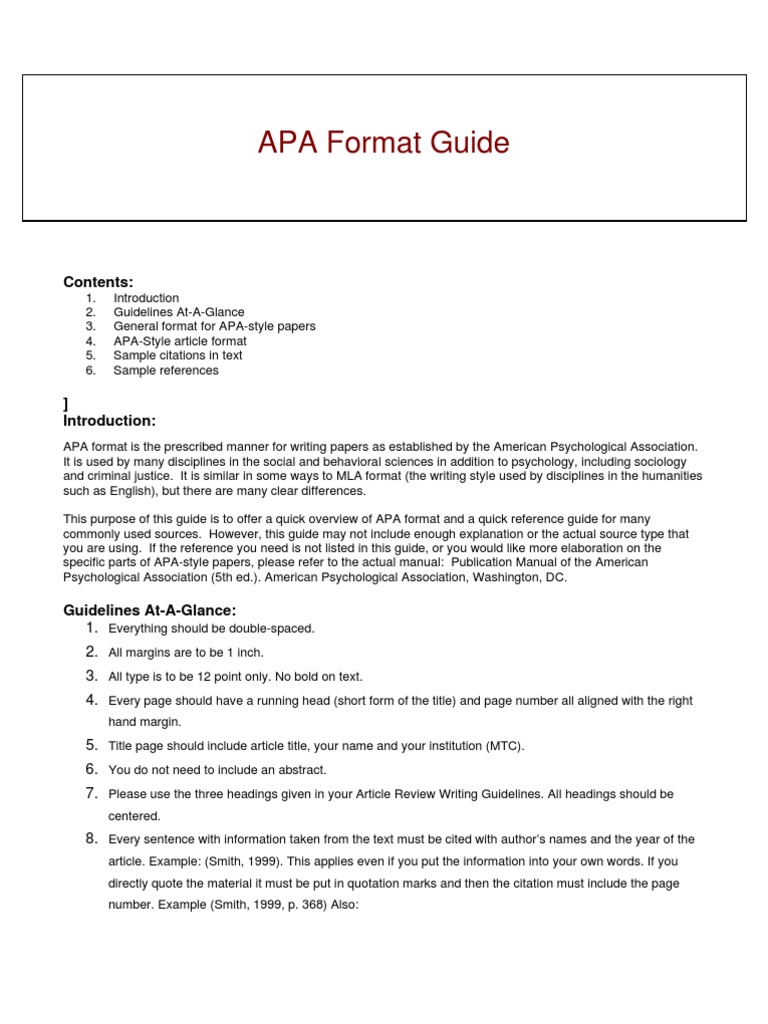 201 APA Format Guide Spring 2009 Citation Apa Style