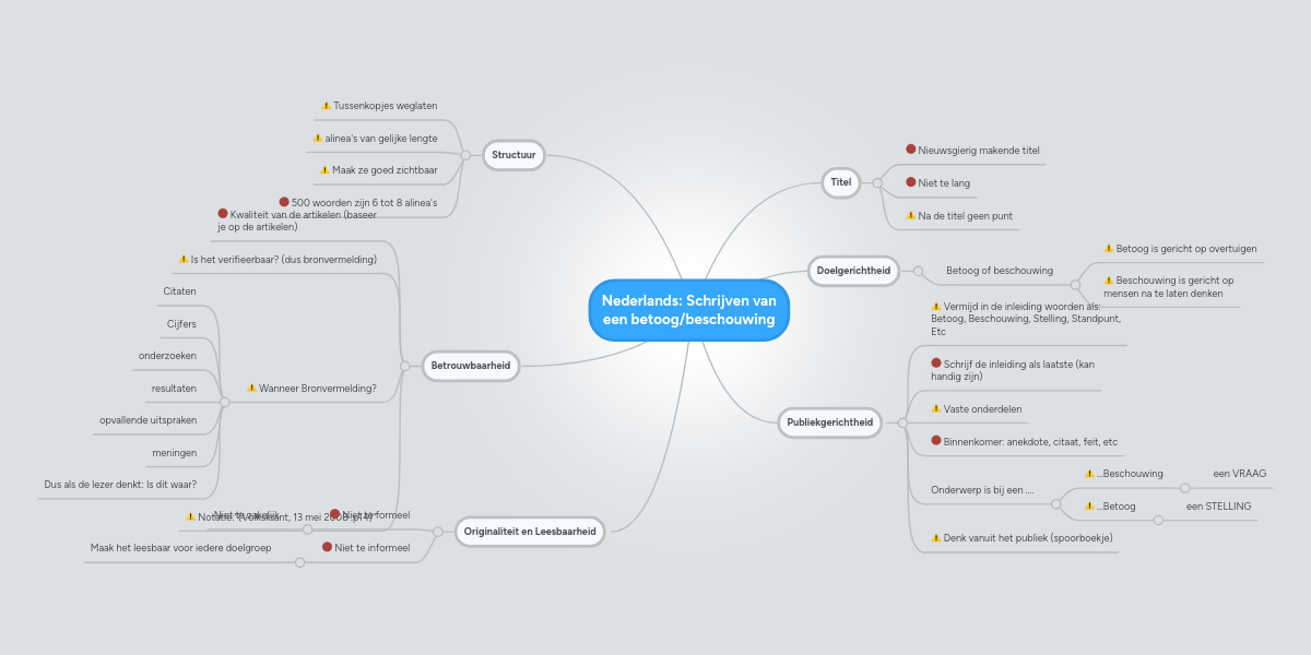 Gebruik de juiste interpunctie in het citaat. Bij elk onderwerp moet dus een stelling.