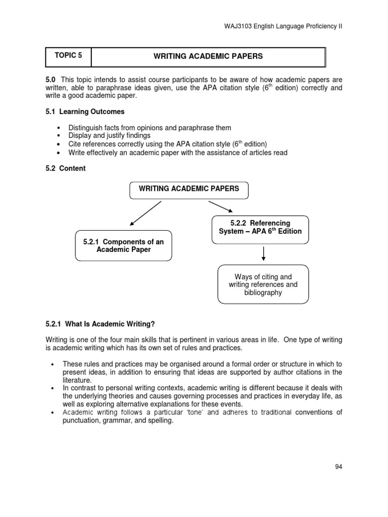 Topic 5 Writing Academic Papers Citation Academic