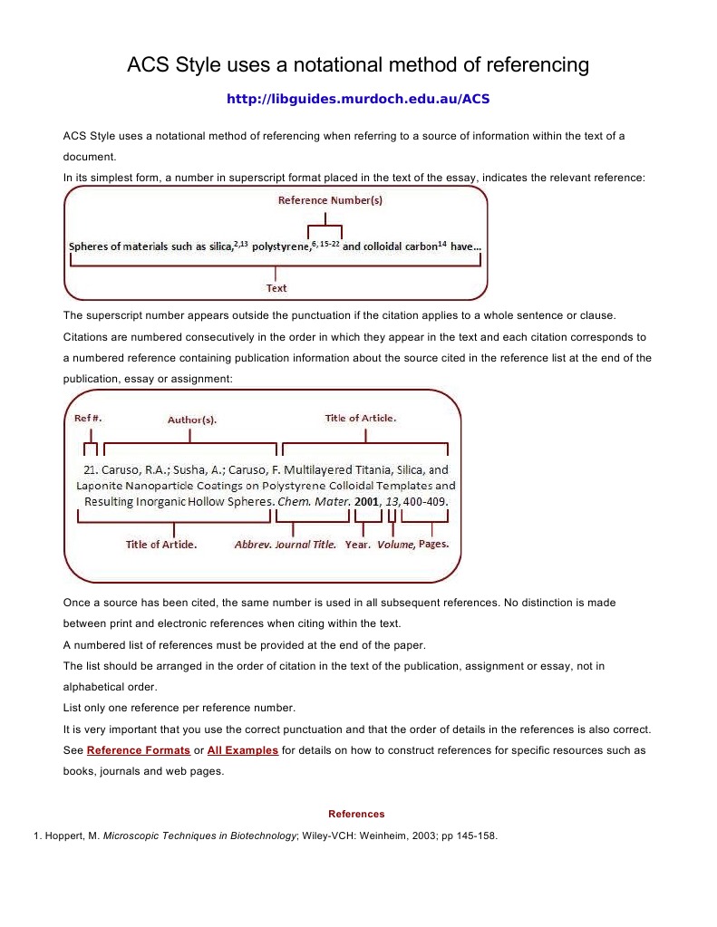 Download the output style file: In chemistry, the references are used in a paper may be presented in a number of formats, so always ask what your professor requires. The acs style guide by janet s.
