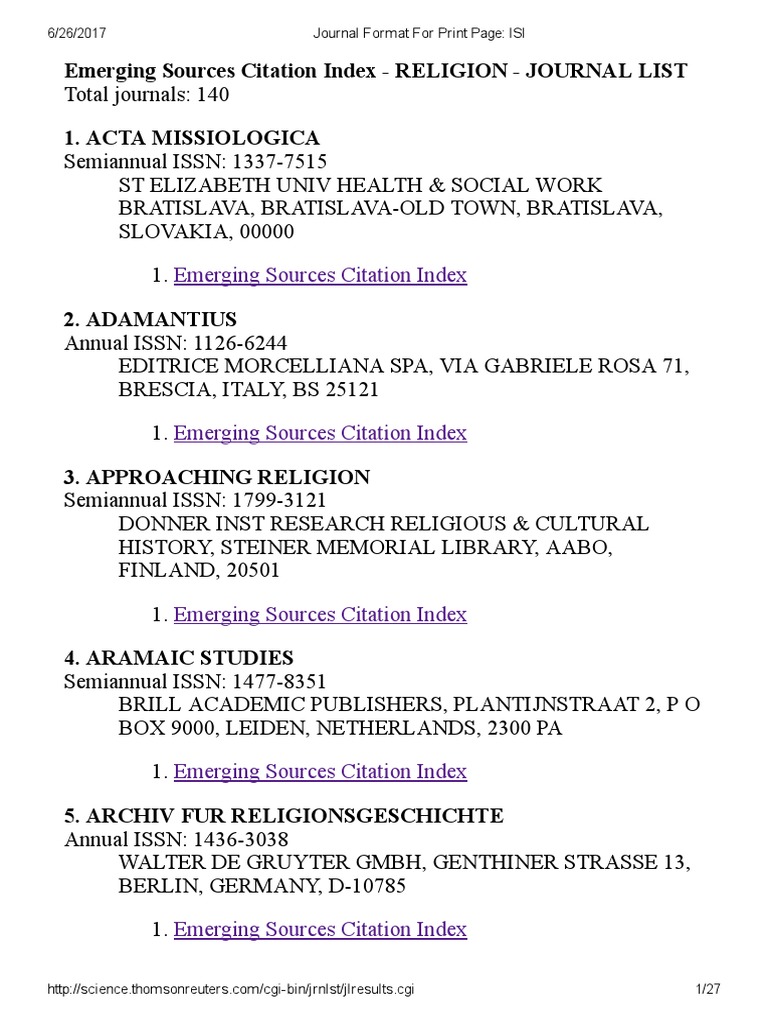 Emerging Sources Citation Index List Of Journals