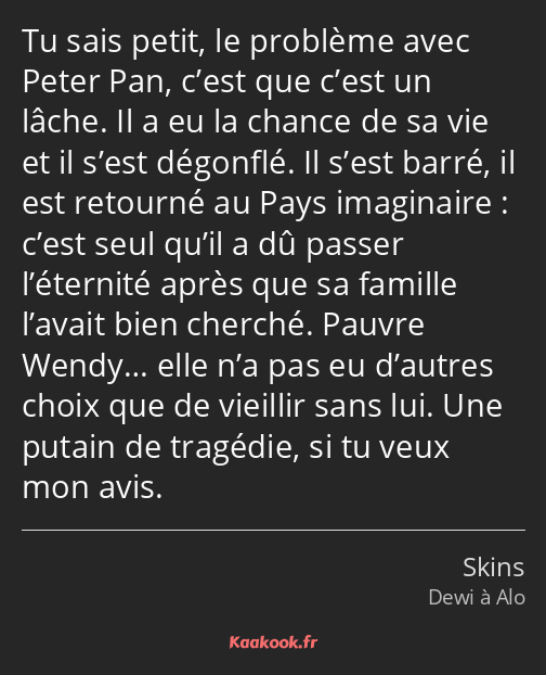 Le mal ressemble à Peter Pan. Il possède le privilège