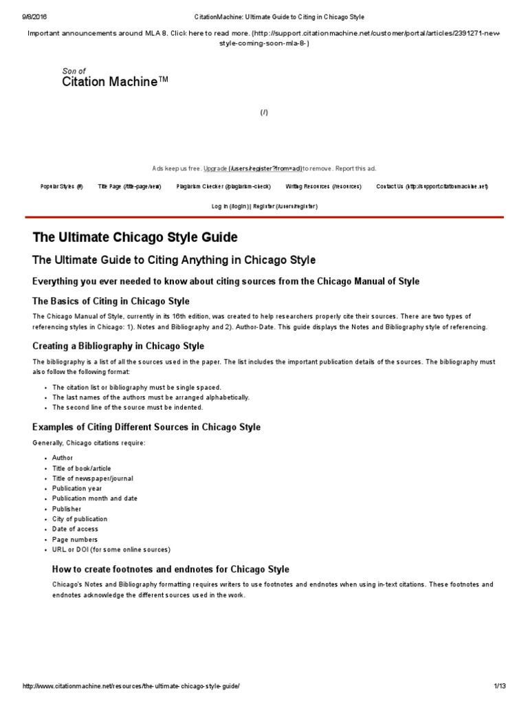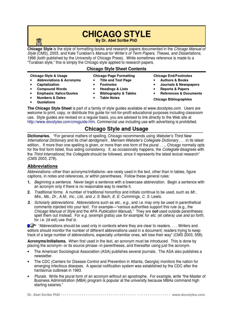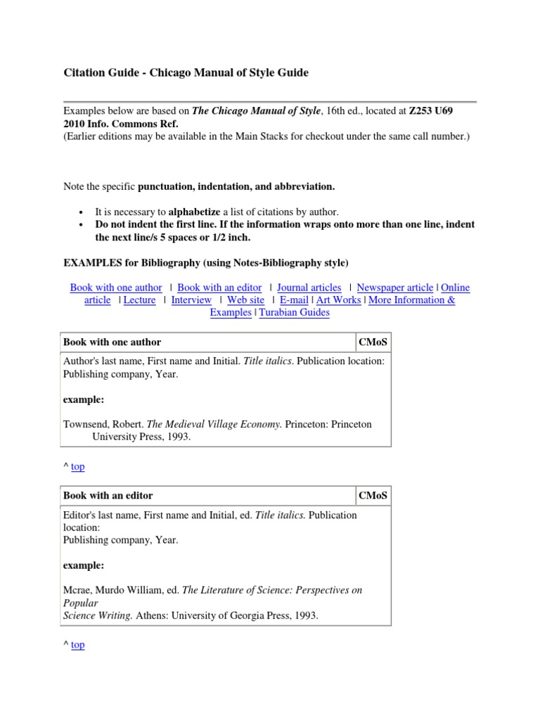 In favor of shortened citations as described elsewhere in this section; The chicago style, also called the turabian style, of citation is an extremely flexible citation style. Chicago citation style notes and bibliography system for history okanagan college library the okanagan college history department requires the use of the notes and bibliography system from the 17th edition of the chicago manual of style for the documentation of references in student papers.