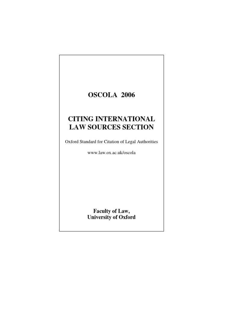 OSCOLA 2006 Oxford Standard for Citation of Legal